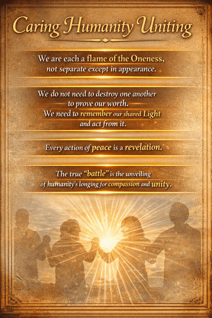 The true “battle” of these times is not one of machines or weapons—it is the unveiling of humanity’s longing for compassion and unity. We do not need to destroy one another to prove our worth. We need to remember our shared Light and act from it.